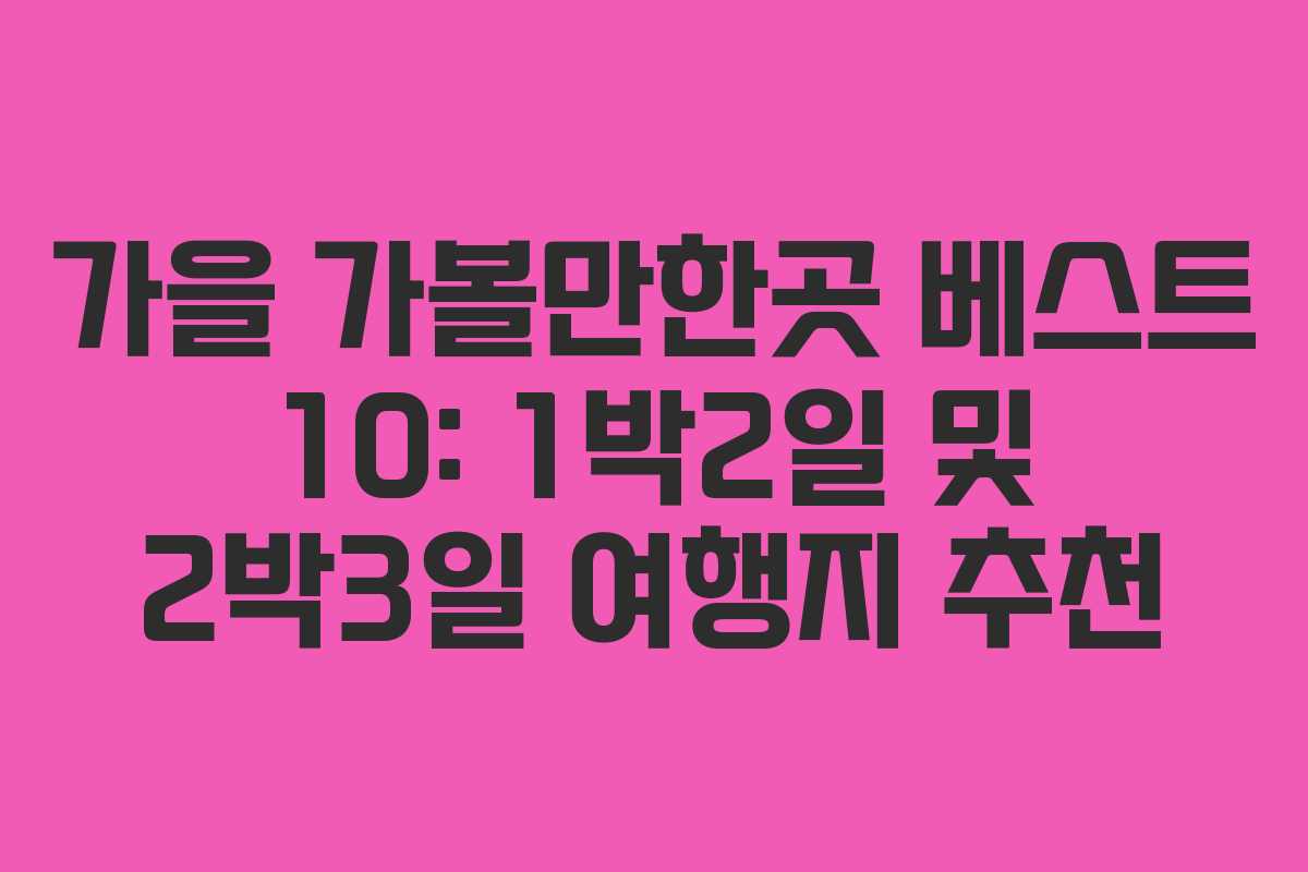 가을은 선선한 날씨와 함께 아름다운 단풍을 즐길 수 있는 최적의 여행 시즌입니다. 이번 포스팅에서는 가을에 추천하는 1박2일 및 2박3일 여행지 10곳을 소개합니다. 각 여행지는 자연경관과 문화유산을 동시에 즐길 수 있어 특별한 경험을 선사할 것입니다.