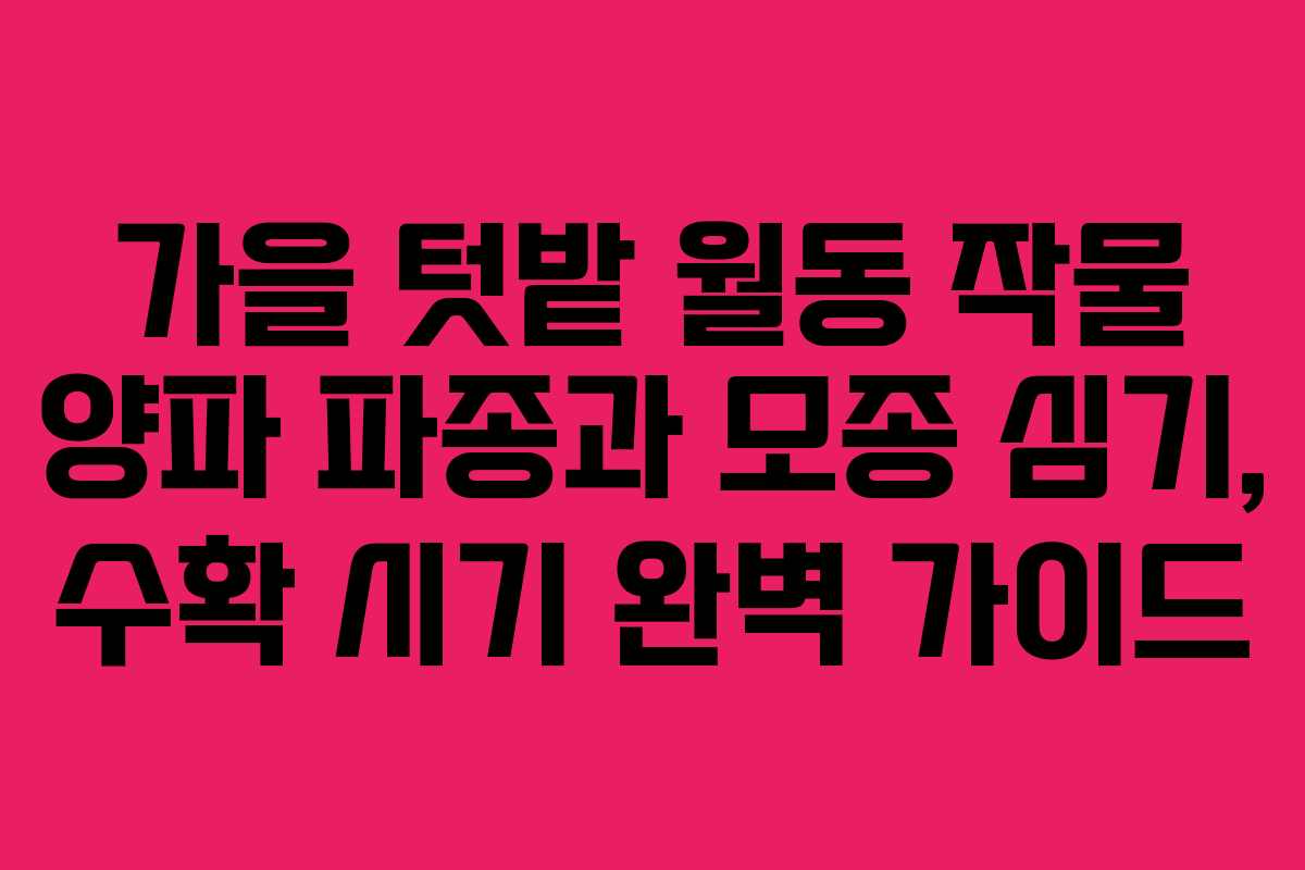 가을 텃밭 월동 작물 양파 파종은 언제 해야 하나요?