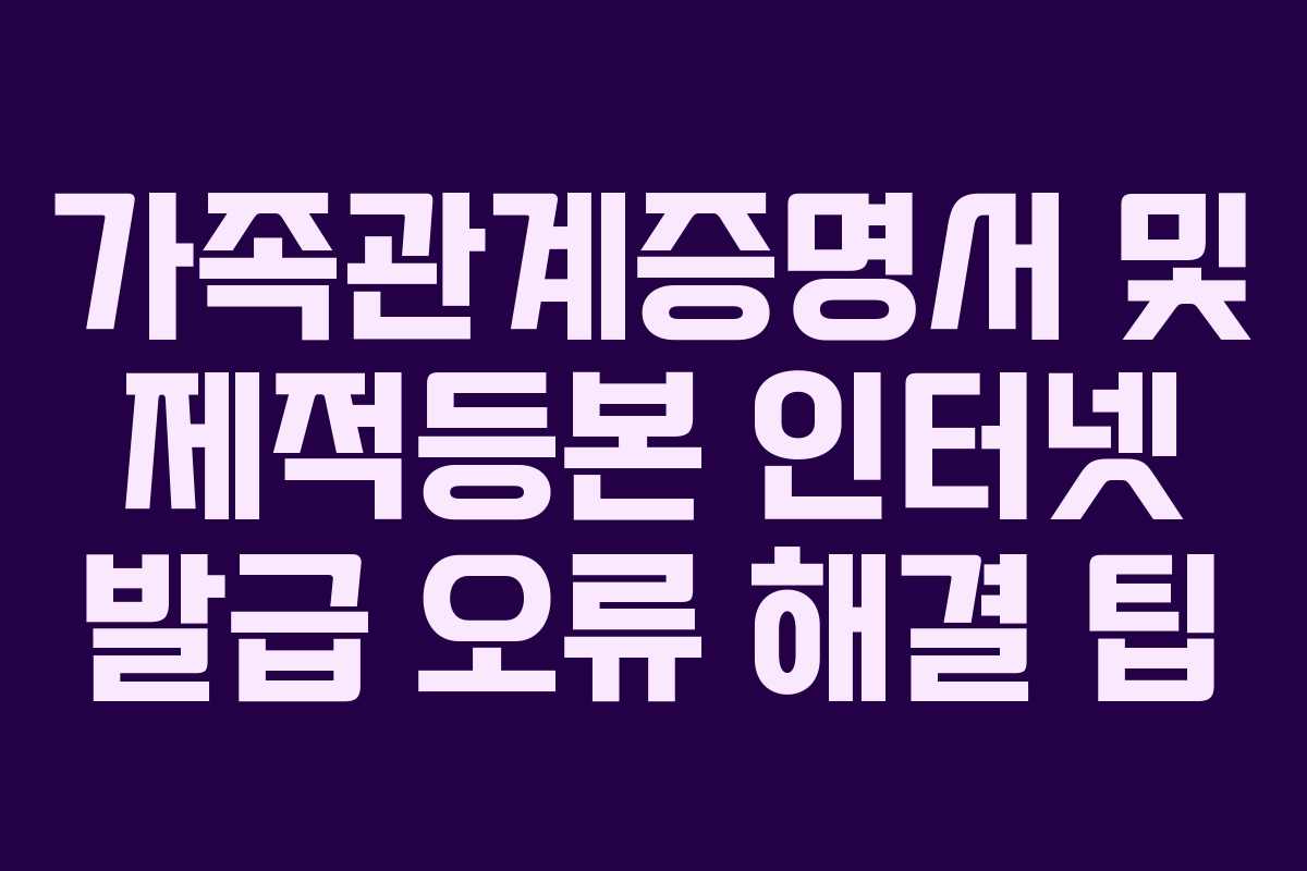 가족관계증명서와 제적등본을 인터넷으로 발급받는 과정에서 발생하는 오류는 많은 사람들이 겪는 문제입니다. 특히 전자가족관계 등록 시스템 접속 시 오류가 발생하여 곤란을 겪는 경우가 많습니다. 본 글에서는 이러한 오류를 해결하는 방법과 함께, 대체 발급 방법에 대해 알아보겠습니다.