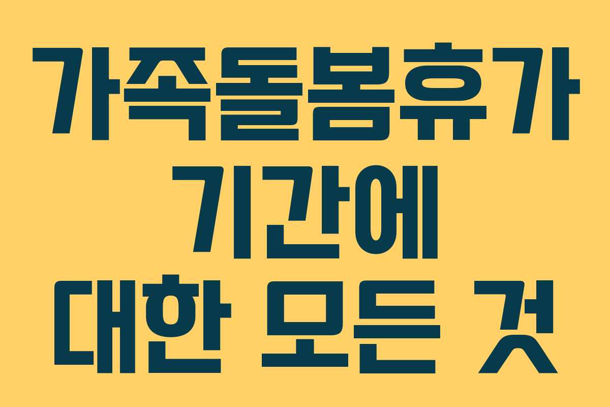 가족돌봄휴가는 근로자가 가족의 질병, 사고, 노령 등으로 인해 돌봄이 필요할 때 법적으로 보장된 휴가입니다. 이 글에서는 가족돌봄휴가의 기간, 최대 사용 기간, 활용 방법 등을 상세히 설명하겠습니다.