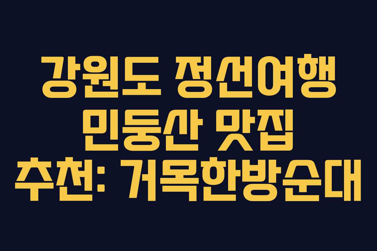 강원도 정선에서의 여행 중 특별한 맛집을 찾고 계신가요? 민둥산 근처에 위치한 ‘거목한방순대’를 추천합니다. 아침에 따뜻한 순대국으로 하루를 시작하기에 안성맞춤인 이곳은 여행 중 우연히 발견한 맛집입니다.