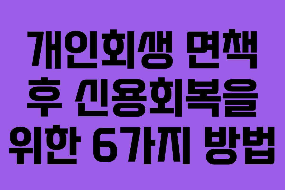 개인회생 면책 결정을 받은 후, 정상적인 금융생활로 복귀하기 위한 중요한 단계는 신용점수 회복입니다. 면책 후 신용점수가 낮아 대출이 어려울 수 있으므로, 신속하게 신용을 회복하는 방법을 알아보겠습니다.
