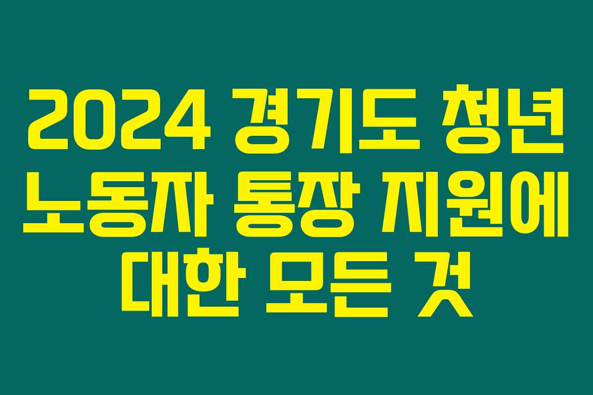 저축을 통해 목돈을 마련하고 싶은 청년이라면, 이 글에서 2024 경기도 청년 노동자 통장의 지원 자격과 신청 방법을 반드시 체크하셔야 합니다!