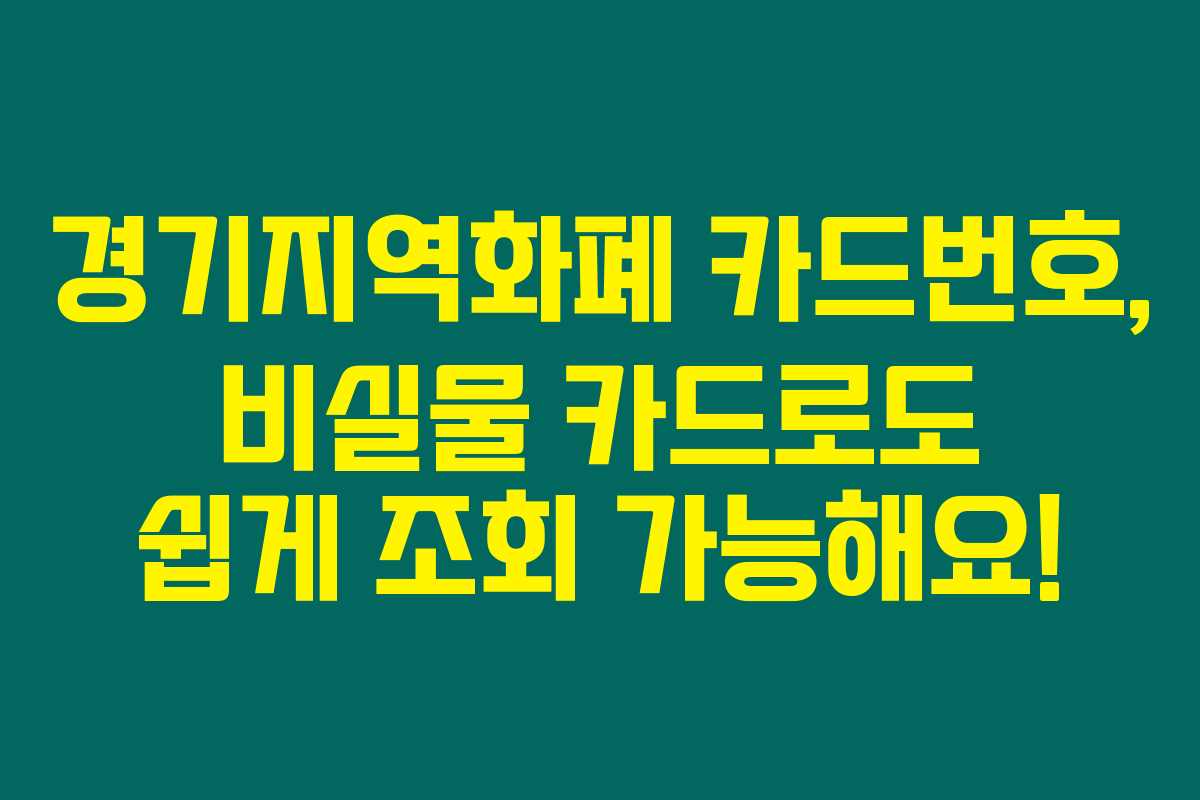 경기도에서 발행한 경기지역화폐는 여러 할인 혜택과 인센티브로 인기입니다. 하지만 실물 카드가 없을 때 카드번호를 조회해야 하는 상황, 정말 당황스럽죠? 특히 재난지원금을 신청해야 할 때에는 더욱더 필요할 수 있어요. 아래를 읽어보시면 그 방법을 차근차근 설명드릴게요.