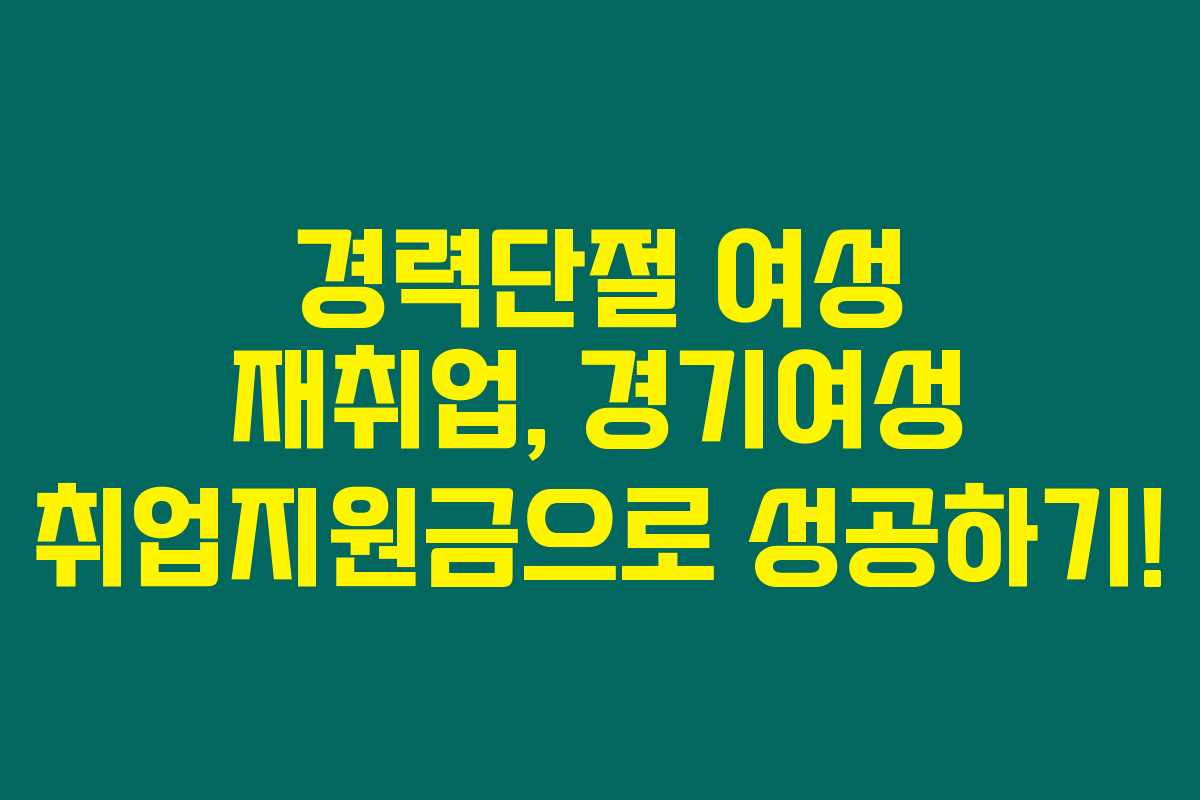 경력단절 여성 재취업, 경기여성 취업지원금으로 성공하기!