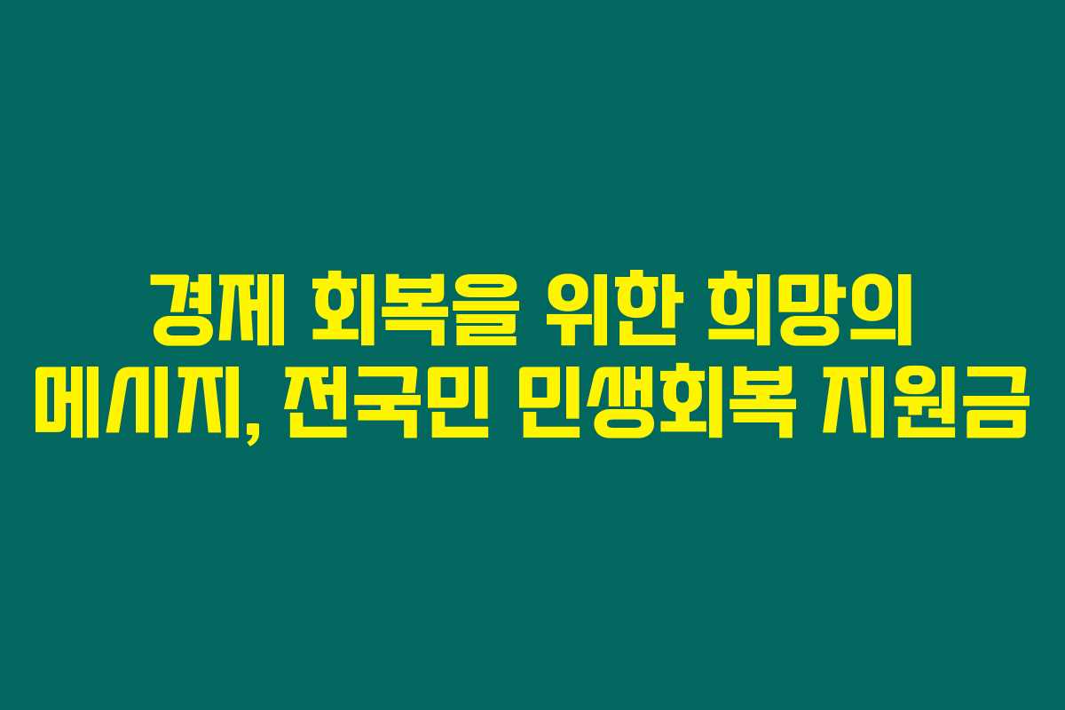 전국민 민생회복 지원금은 경제적 어려움을 겪고 있는 국민에게 제공되는 정부의 금융 지원금으로, 코로나19 등 외부 요인으로 영향을 받은 가계의 재정적 부담을 덜어주는 데 초점을 맞추고 있습니다.