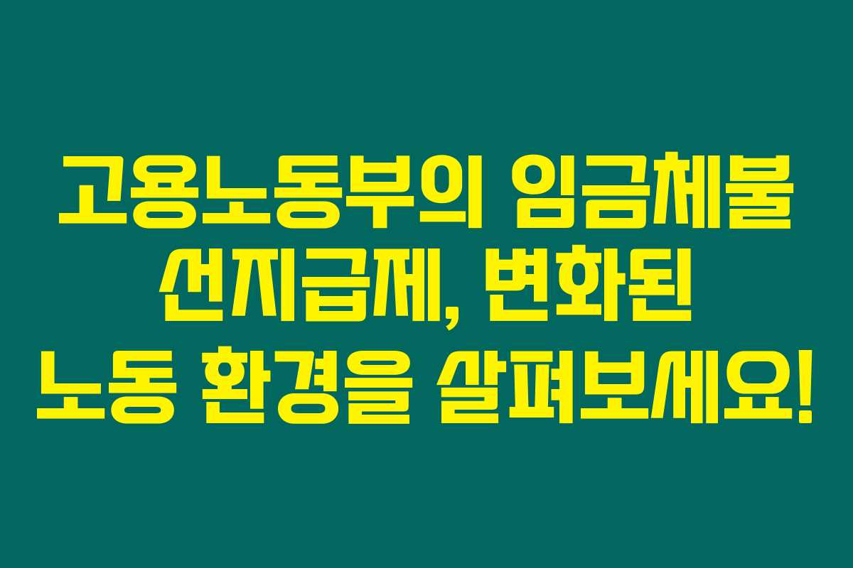 제가 직접 경험해본 결과로는 2023년 7월 1일부터 시행되는 고용노동부의 임금체불 선지급제는 많은 근로자들에게 긍정적인 변화가 될 것 같습니다. 이 제도는 임금을 체불당한 근로자가 정부로부터 미리 임금을 받을 수 있는 기회를 제공하여, 임금체불 문제를 더 빠르고 효율적으로 해결할 수 있도록 돕는답니다. 아래를 읽어보시면 이 제도의 흐름과 함께 보건복지부에서 변경되고 있는 건강보험 관련 규정도 함께 이해할 수 있습니다.