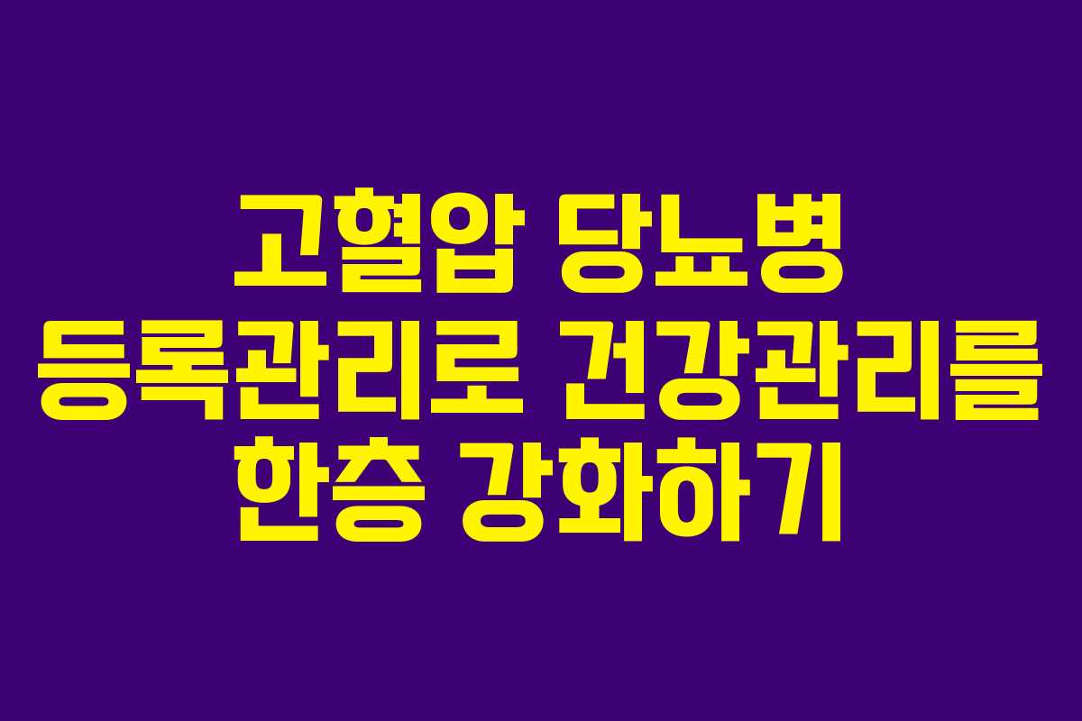 아래를 읽어보시면 만성질환 관리의 핵심 제도인 고혈압 당뇨병 등록관리의 대상, 혜택, 신청 방법과 지역별 현황을 한눈에 파악하실 수 있습니다. 자가 관리 역량을 높이고, 정밀한 진료와 비용 절감을 동시에 누릴 수 있는 실전 정보로 구성했습니다.
