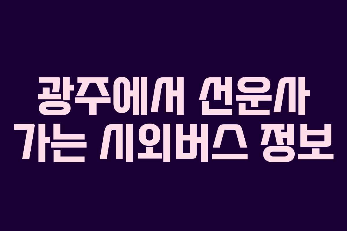 광주에서 선운사로 가는 시외버스는 편리한 교통수단으로, 여행을 계획하는 분들에게 유용한 정보를 제공합니다. 본 포스팅에서는 출발지, 도착지, 요금, 운행시간 및 예매 방법에 대한 상세 정보를 안내합니다.