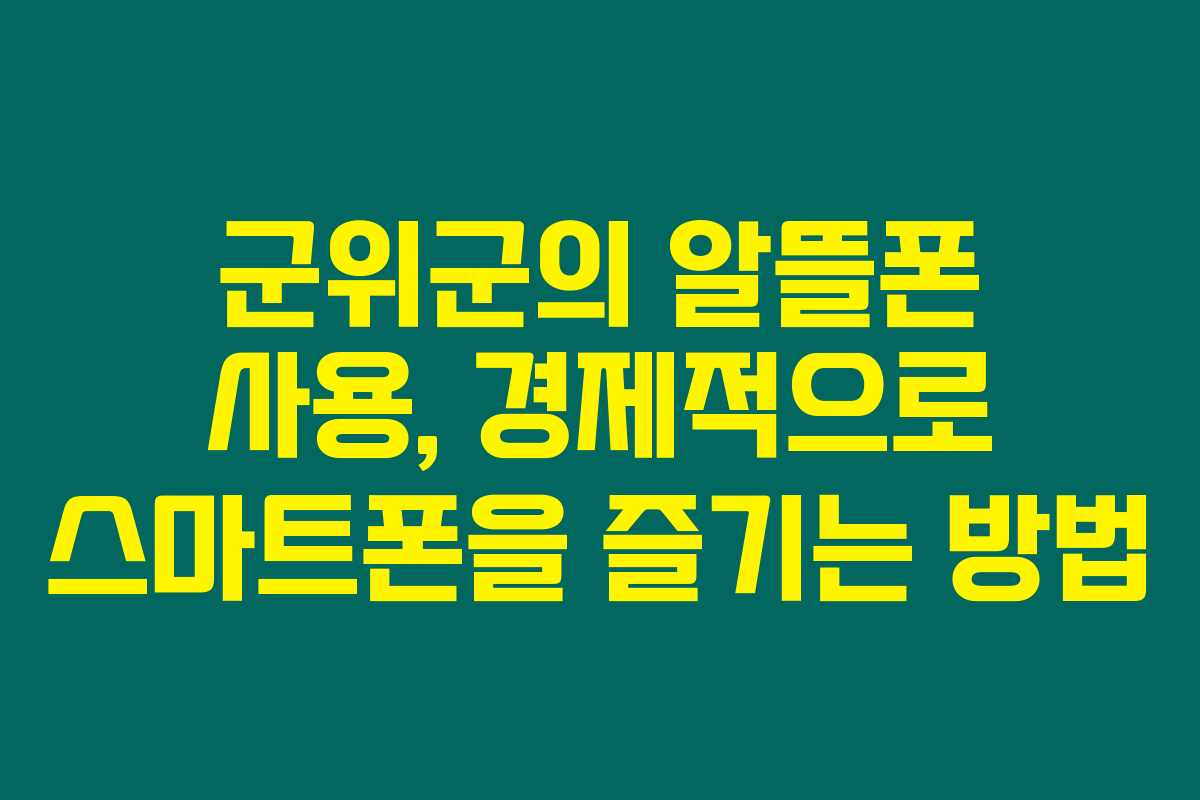 제가 직접 경험해 본 결과, 군위군에서 알뜰폰 서비스를 이용하는 것은 경제적 부담을 덜어줄 수 있는 굉장히 좋은 방법이에요. 요금제를 선택하고, 자급제폰으로 구매하시길 권장합니다. 초저가 요금제로 스마트폰을 이용해보세요!