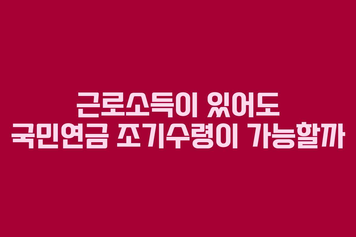 소득이 존재하는 상황에서도 조기수령이 허용될 수 있는 케이스가 있습니다 예를 들어 소득이 있지만 연간 총소득이 특정 한도를 넘지 않는다면 조기수령이 가능할 수 있습니다 다만 이때도 지급액은 감액되거나 지급이 일시 중지될 수 있습니다