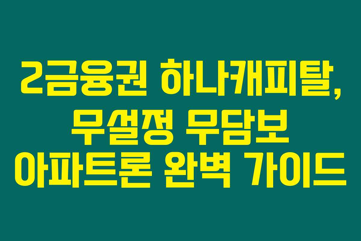 제가 직접 경험해본 결과로는, 2금융권의 하나캐피탈에서는 무담보 무설정 아파트론 상품을 통해 소득이 제한적이거나 직업이 없는 경우에도 아파트 소유자의 신용을 기반으로 대출받을 수 있습니다. 이 내용에 대해 아래를 읽어보시면 궁금증이 해결될 거예요.