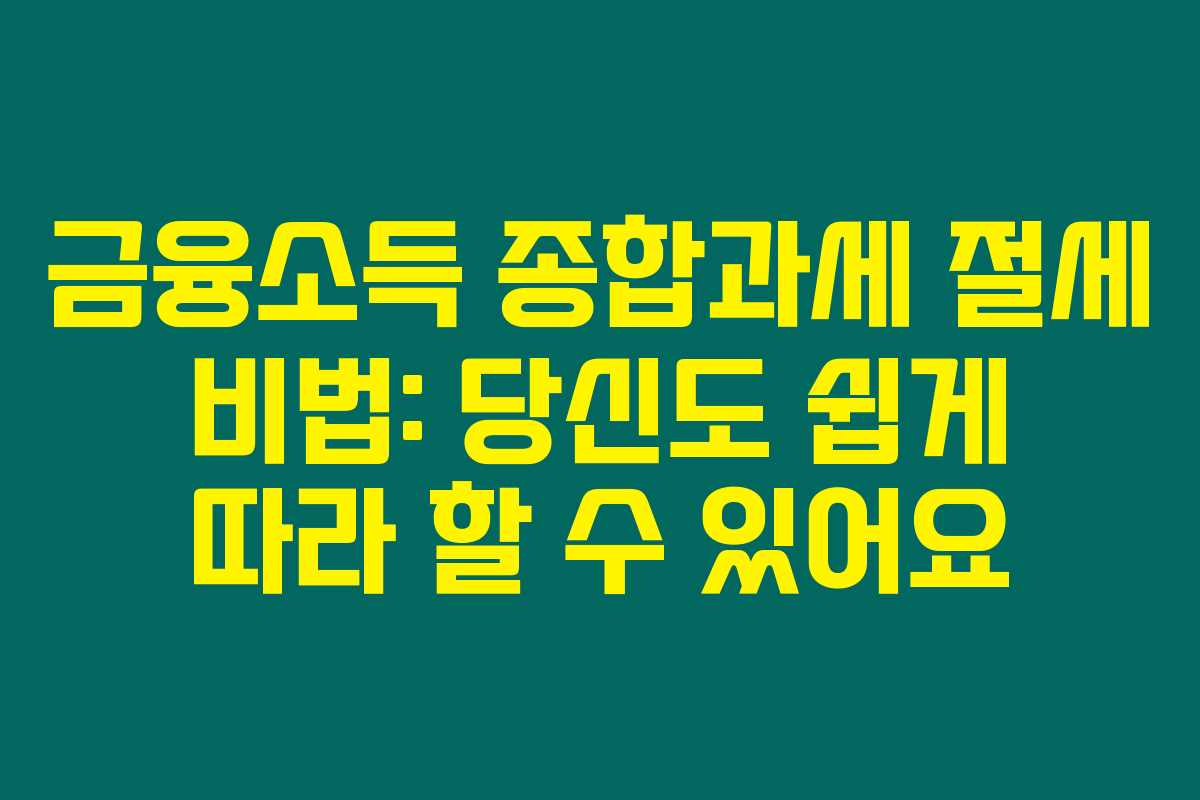 제가 직접 알아본 바로는, 금융소득 종합과세는 많은 이들에게 복잡하고 헷갈리는 주제입니다. 하지만 절세의 기회를 활용하면 더 많은 재테크의 문을 열 수 있다는 것을 알게 되었어요. 다음 내용에서는 금융소득 관련 제품과 절세 방법에 대한 정보를 제공드리니, 아래를 읽어보시면 많은 도움이 될 거예요.
