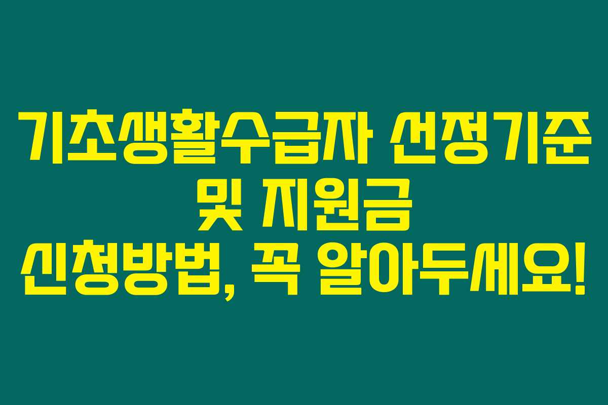 기초생활수급자 선정기준 및 지원금 신청방법, 꼭 알아두세요!