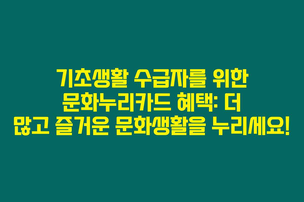 기초생활 수급자를 위한 문화누리카드 혜택: 더 많고 즐거운 문화생활을 누리세요!
