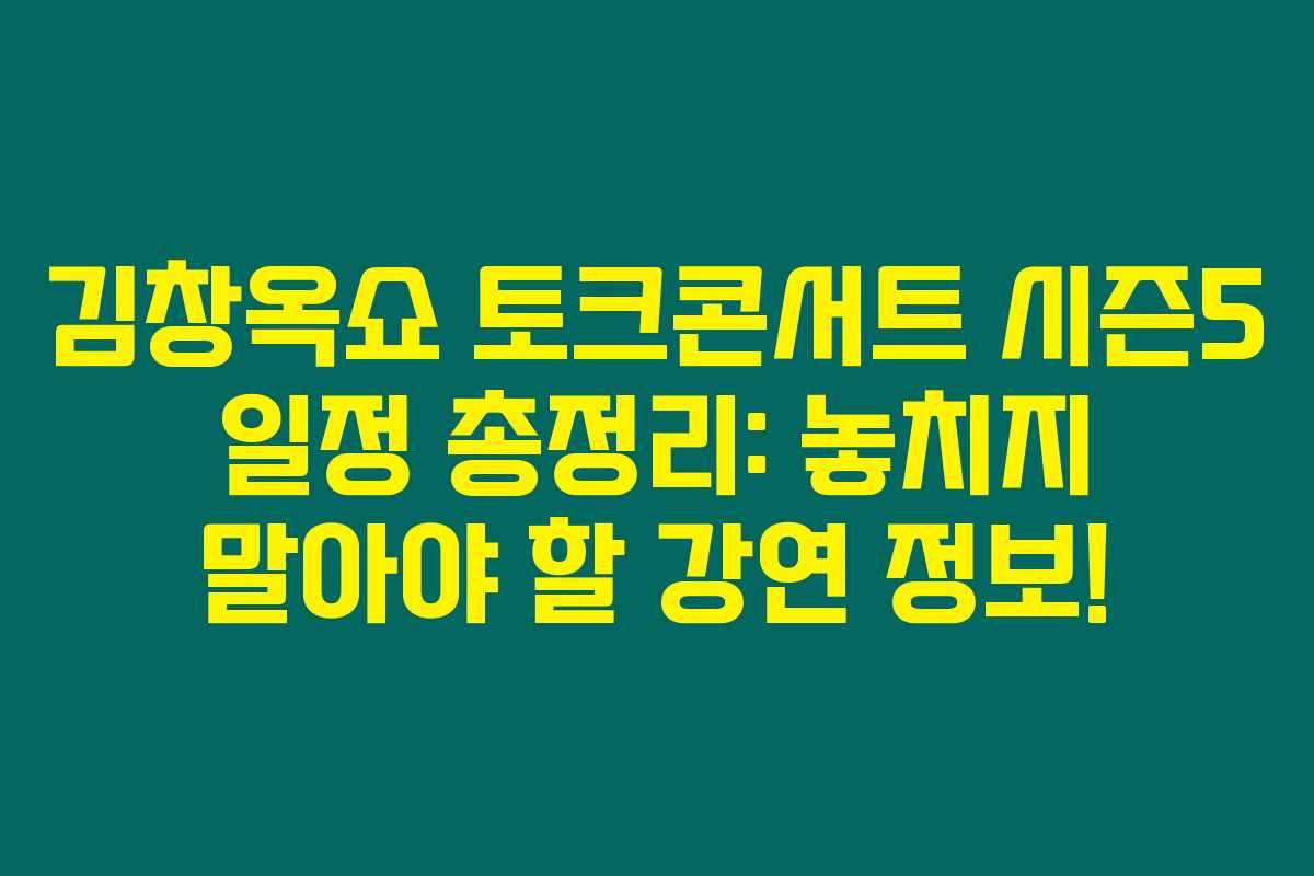 김창옥님을 사랑하는 팬이라면 꼭 알아야 할 소식이 있어요! 김창옥쇼 강연 일정과 관련된 모든 정보를 아래를 읽어보시면 빠짐없이 체크할 수 있습니다. 그의 강연과 토크콘서트를 통해 삶의 많은 도움을 받을 수 있는 기회를 절대 놓치지 마세요!
