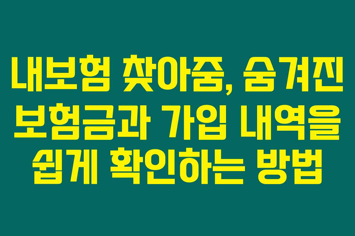 보험에 가입한 후 시간이 지나면 가입한 내용을 잊거나 누락된 보험금이 남아 있는 경우가 많습니다. 만약 여러분이 숨겨진 보험금이 있다는 이야기를 들었다면 궁금하지 않으신가요? “내보험 찾아줌” 서비스를 통해 간편하게 자신의 보험 내역과 숨은 보험금을 확인하고 청구하는 방법을 알아보세요. 아래를 읽어보시면 여러분도 잊고 있던 소중한 자산을 효율적으로 관리할 수 있는 방법을 아실 수 있을 거예요.