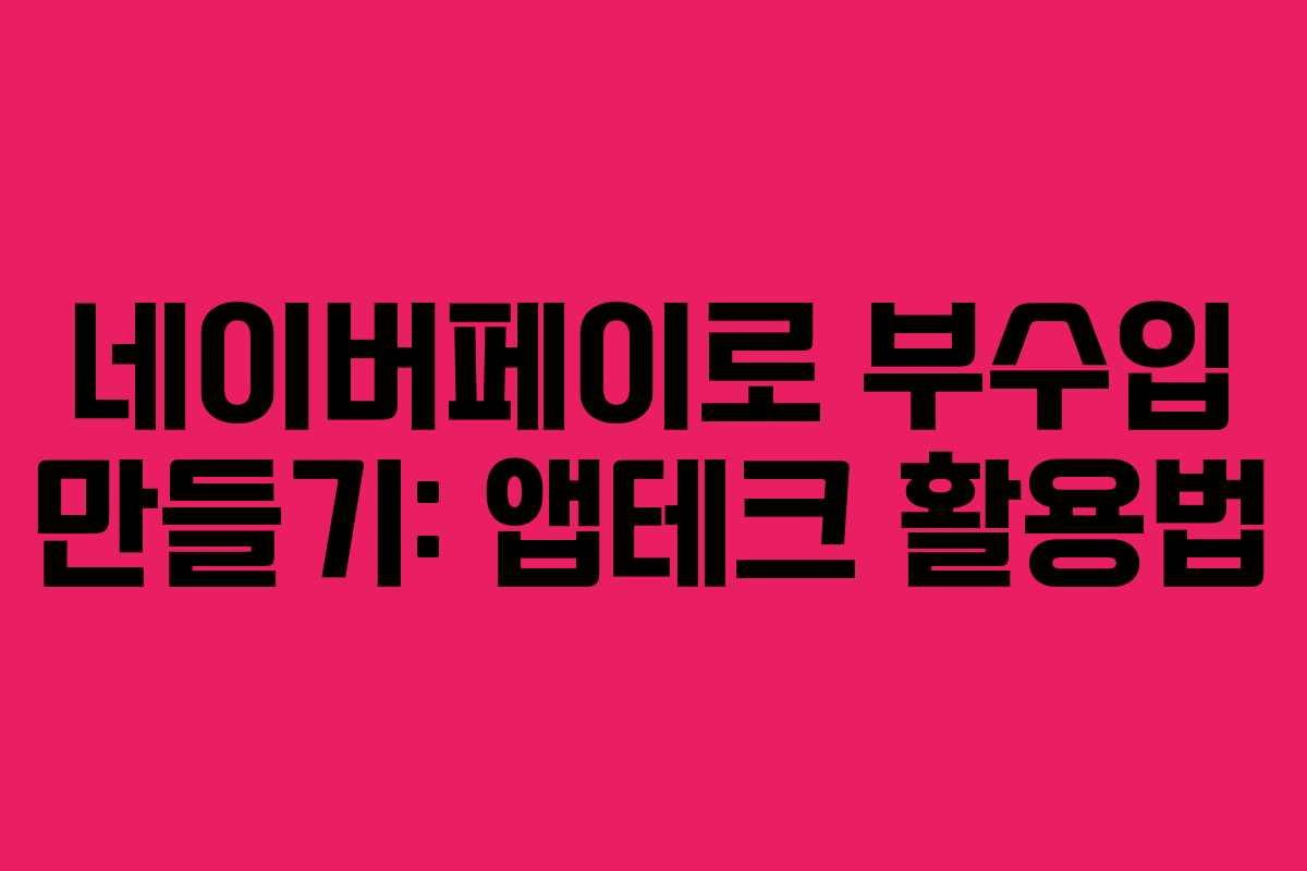 네이버페이로 부수입 만들기: 앱테크 활용법