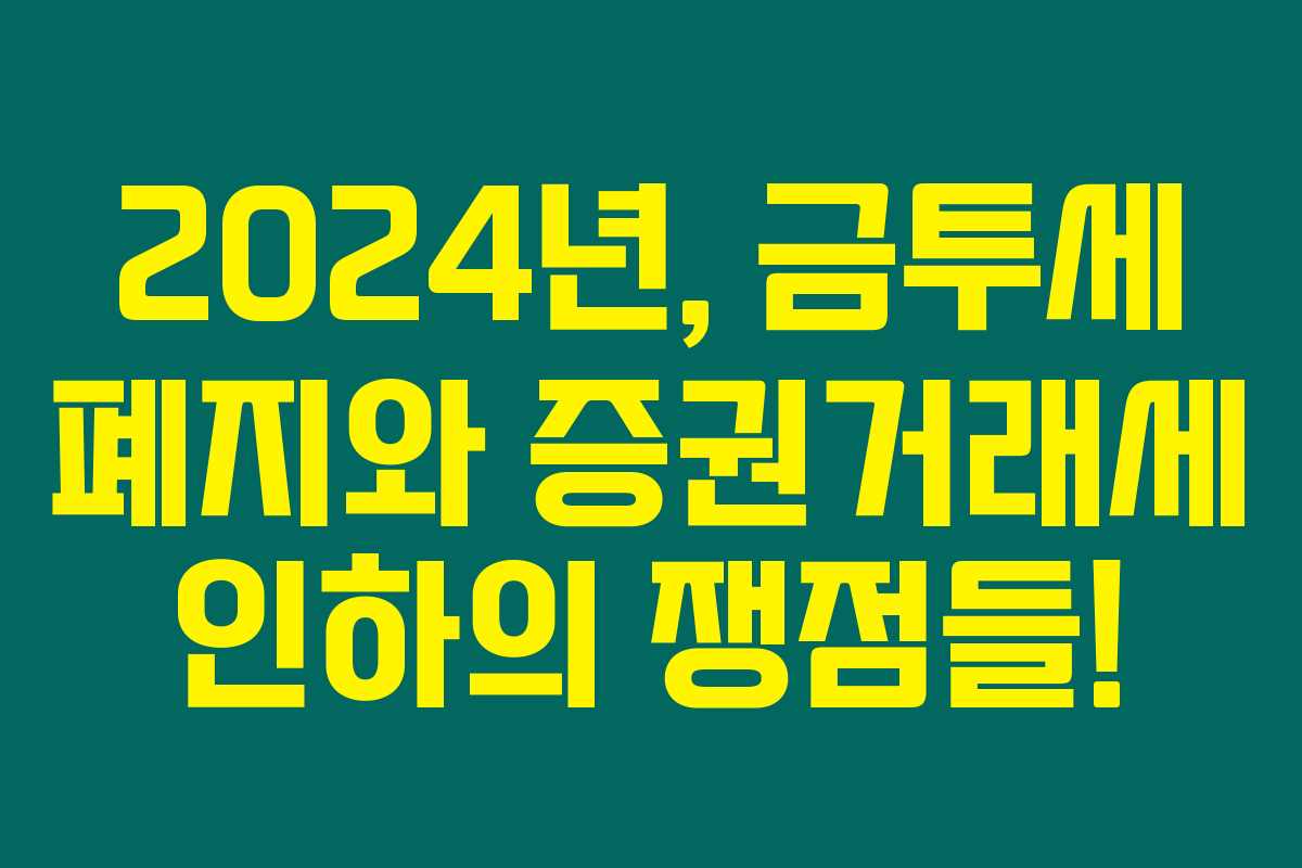 2024년에는 금융투자소득세(금투세)가 폐지되고, 증권거래세가 인하됩니다. 하지만 이러한 변화가 과연 모든 투자자에게 긍정적인 영향을 미칠까요? 아래를 읽어보시면 이러한 결정에 따른 효과와 쟁점을 명확히 이해할 수 있을 거예요!