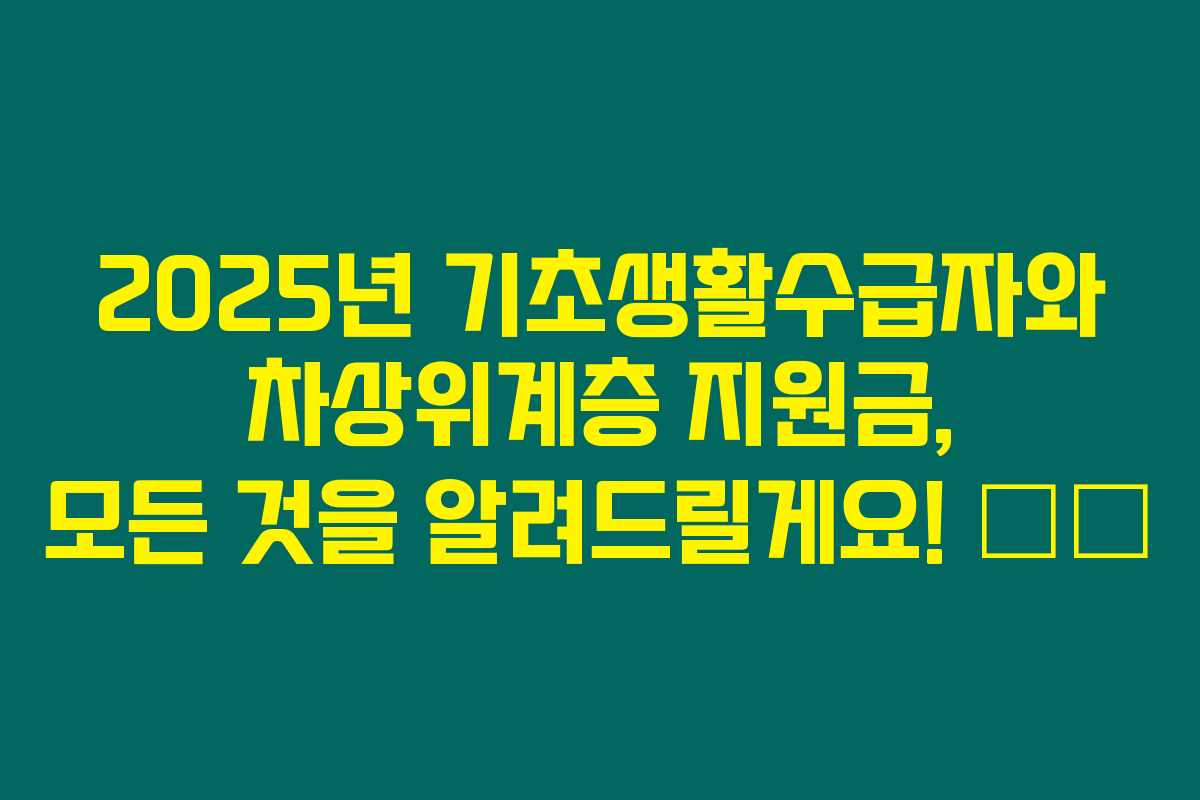 2025년 기초생활수급자와 차상위계층 지원금, 모든 것을 알려드릴게요! 💰🏠