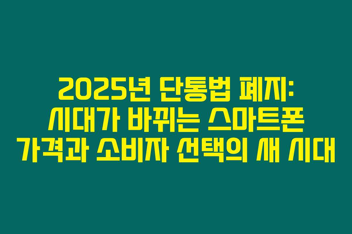 제가 직접 알아본 바로는, 2025년부터 단통법이 폐지됨에 따라 스마트폰 가격과 소비자 선택권에 큰 변화가 불가피하게 됩니다. 단통법, 즉 단말기유통구조개선법은 2014년에 도입된 법으로, 당시에는 소비자 보호를 목적으로 하였지만 시간이 지나면서 여러 문제점이 발생하였죠. 아래를 읽어보시면 이 법의 폐지와 그로 인해 예상되는 소비자와 시장에 미칠 영향에 대해 깊이 있게 정리하였습니다.