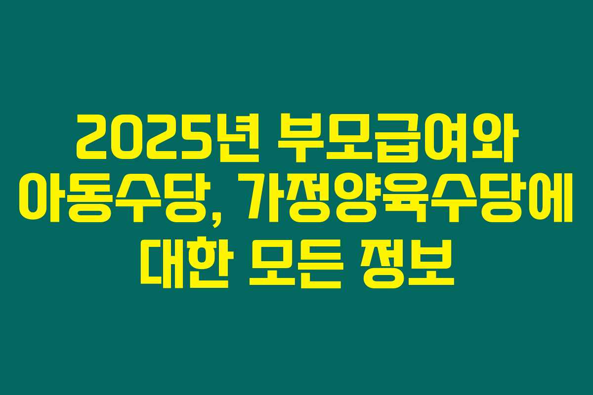 💰 2025년 부모급여와 아동수당, 가정양육수당 지급액 총정리