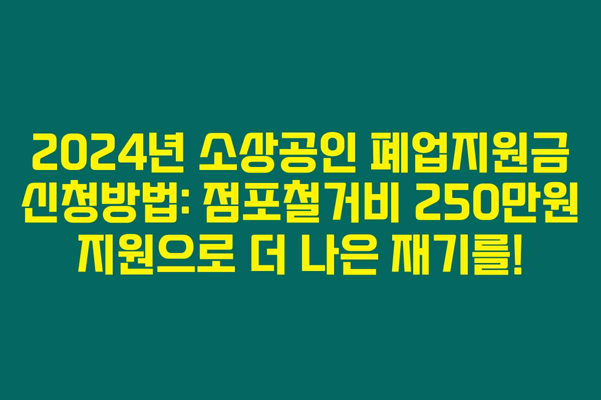 2024년 소상공인 폐업지원금 신청방법: 점포철거비 250만원 지원으로 더 나은 재기를!