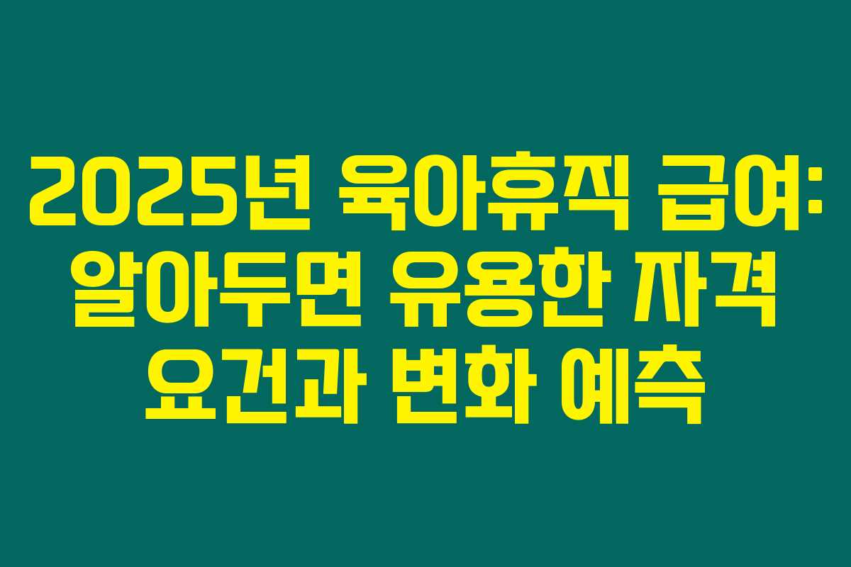 2025년 육아휴직 급여 제도에 대해 제가 직접 체크해본 결과로는, 부모님들이 육아휴직을 준비하는 데 도움이 될 수 있는 정보가 많은데요. 특히 자격요건과 예상 변경사항은 꼭 미리 숙지해 두시는 게 중요해요. 아래를 읽어보시면 육아휴직 급여와 관련된 전반적인 내용을 이해하는 데 도움이 될 것입니다.