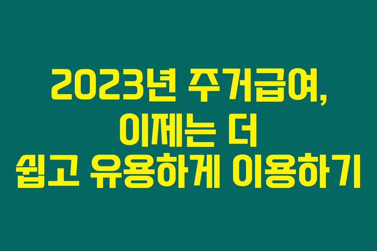 2023년 주거급여에 대해 제가 직접 확인해본 결과, 저소득층을 위한 임차료 지원 및 주택 개량 지원이 더욱 넓어졌다는 사실을 알게 되었어요. 이 글에서는 주거급여의 조건, 혜택, 신청 방법 및 잘 알려지지 않은 정보까지 상세하게 정리해보았답니다.