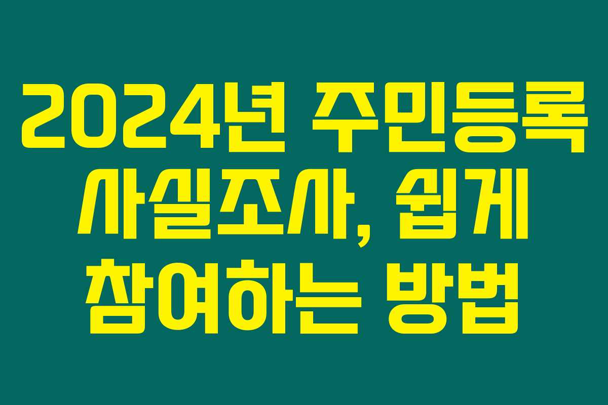 주민등록 사실조사는 매년 돌아오는 필수 조사로, 2024년도에도 진행됩니다. 이 중요한 조사에 참여하는 방법을 간단히 설명해 드릴게요. 아래를 읽어보시면, 주민등록 사실조사의 필요성과 참여 방법을 확실히 알게 될 거예요.