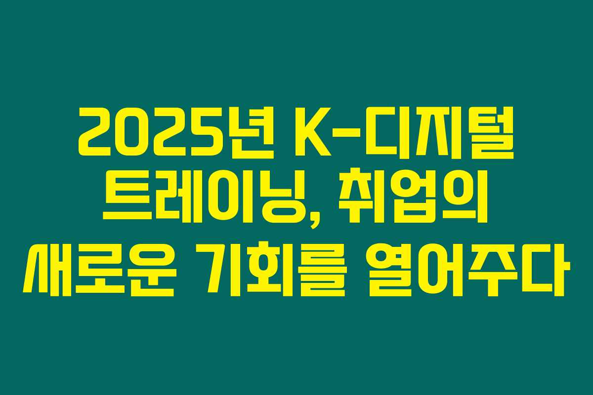 2025년 K-디지털 트레이닝은 여러분이 디지털 시대에 발을 내딛는 데 필요한 강력한 도구가 되어줄 것입니다. 앞으로의 기술과 시장을 겨냥하여 자신에게 맞는 과정을 선택하는 것이 중요하답니다. 지금 바로 여러분의 미래를 설계해보세요!