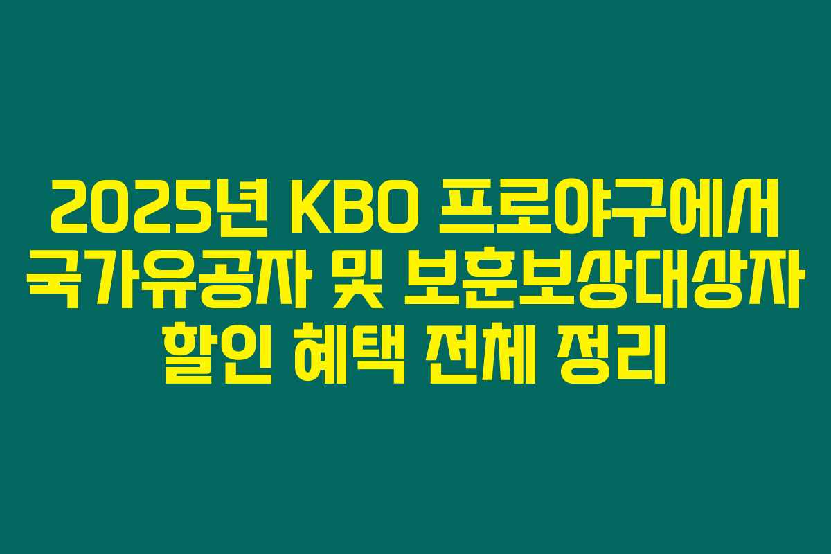 2025년 현재 KBO 리그 전 구단은 국가유공자에게 무료입장 또는 50% 할인 혜택을 제공하고 있습니다. 성격상 이 제도는 각 구단별로 다르게 운영되며, 대부분의 경우 현장 발권을 통해 혜택이 적용됩니다.