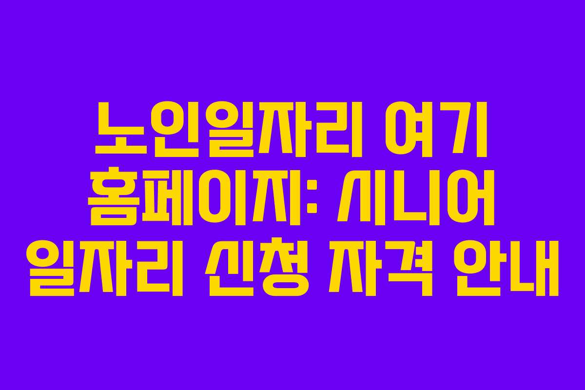 노인일자리 여기 홈페이지: 시니어 일자리 신청 자격 안내