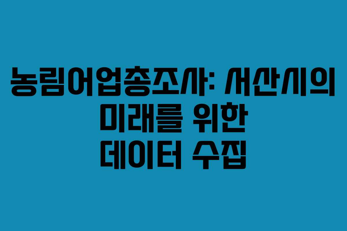 농림어업총조사는 서산시를 포함한 전국의 농림어가의 규모와 구조를 파악하기 위해 실시되는 중요한 국가 통계조사입니다. 이 조사를 통해 수집된 데이터는 농림어업의 발전과 정책 결정에 큰 도움이 됩니다.