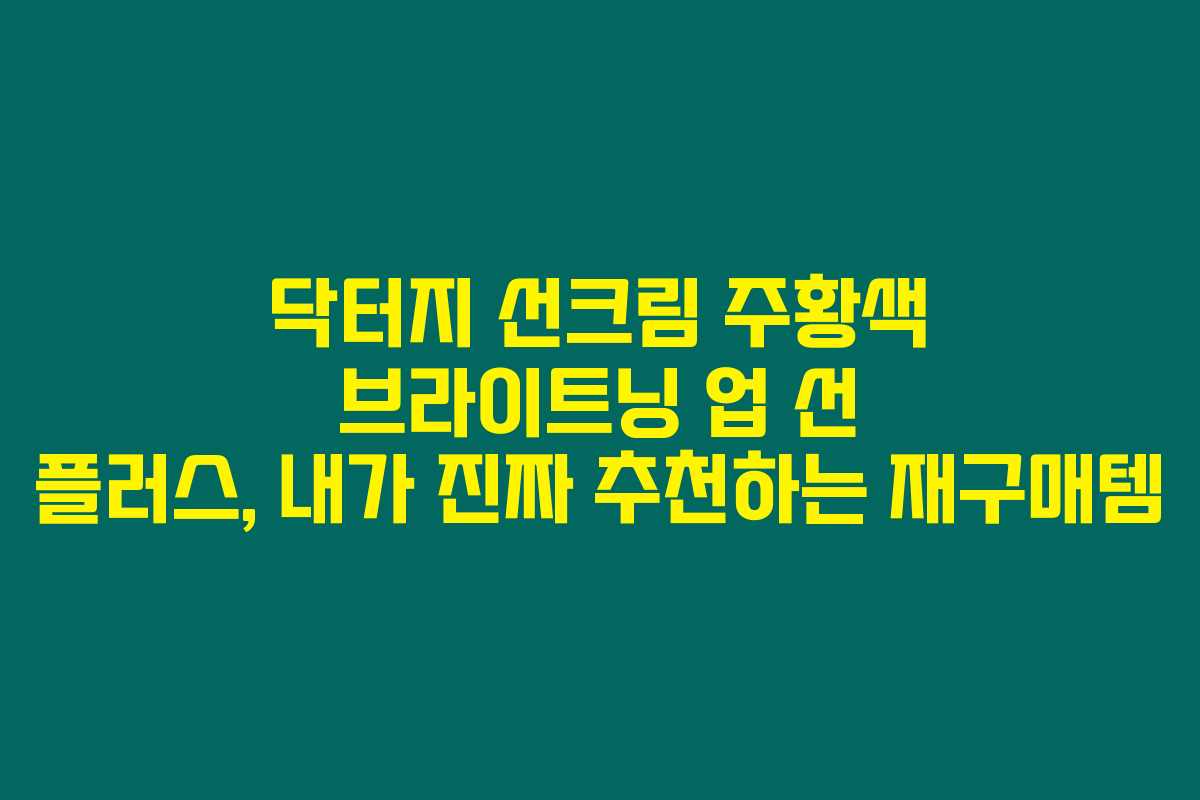 여름철 피부를 보호하기 위해서는 정말 좋은 선크림이 꼭 필요하답니다. 만약 선크림 선택에 고민하고 계신다면, 아래 제품을 잘 살펴보셔야 해요. 바로 닥터지 선크림 브라이트닝 업 선 플러스예요!