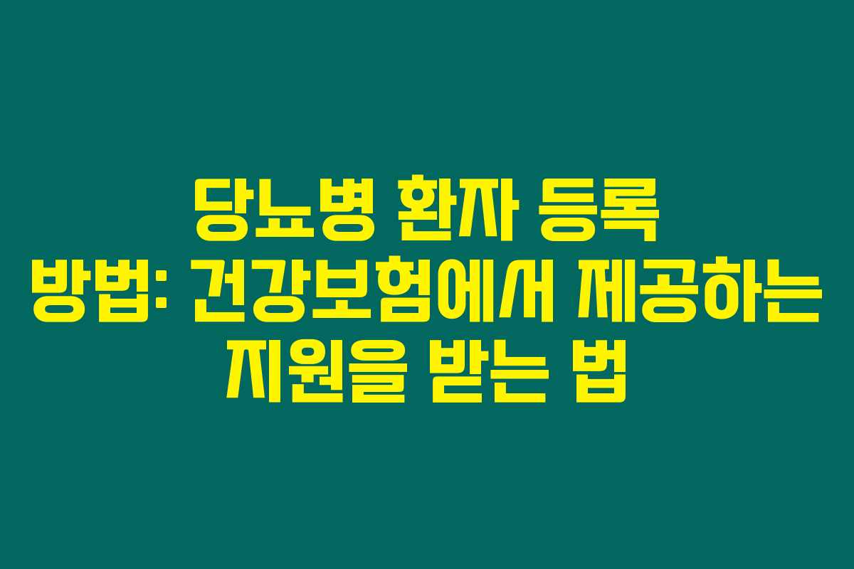 제가 체크해본 바로는, 건강보험에서 당뇨병 환자에게 제공하는 지원금은 환자에게 정말 큰 도움이 됩니다. 하지만 이 지원금을 받기 위해서는 반드시 건강보험공단에 본인이 당뇨병 환자로 등록되어야 해요. 많은 분들이 등록 절차가 복잡할 거라 생각하시는데, 생각보다 간편하답니다. 아래를 읽어보시면 건강보험 당뇨병 환자 등록 방법과 절차를 쉽게 이해할 수 있을 거예요.