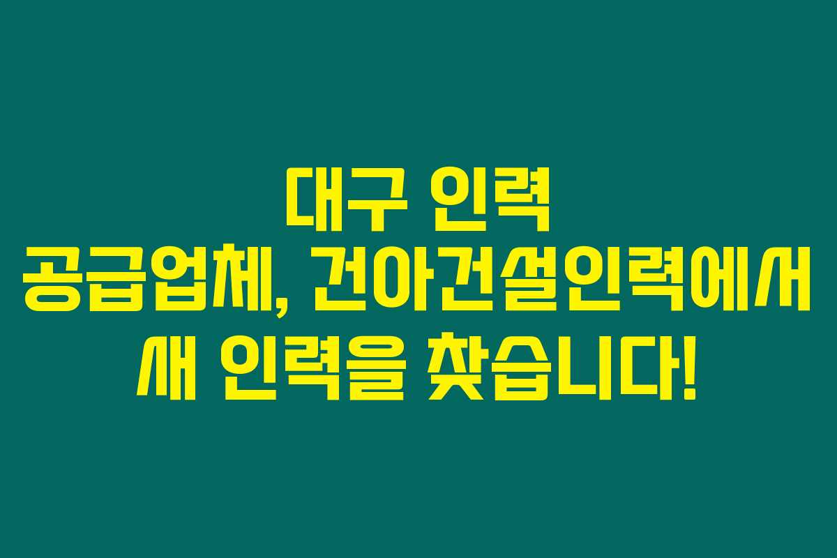 대구 인력 공급업체인 건아건설인력에서 다양한 분야의 인력을 모집합니다. “현재 구직 중이신가요? 혹시 인력을 필요로 하신다면, 아래 내용을 반드시 확인해 보셔야 합니다!”