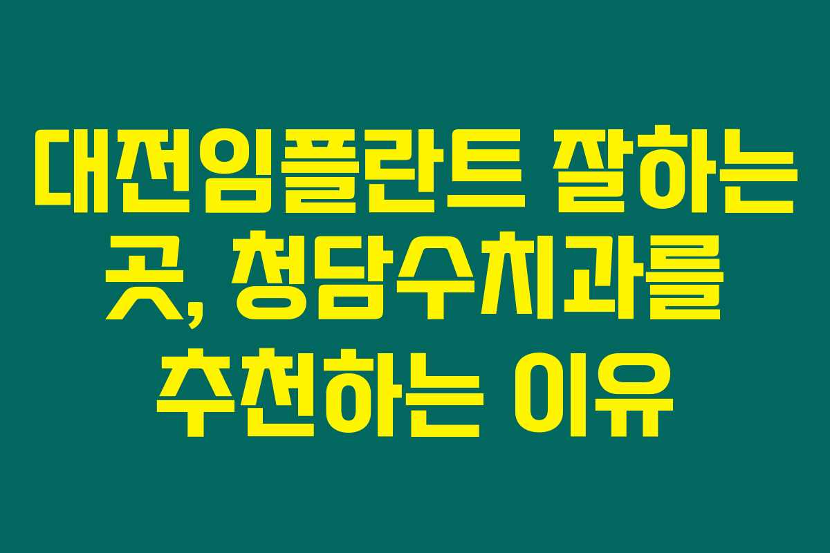 대전에서 임플란트를 고민하고 계신가요? 많은 분들이 선택하는 청담수치과에 대해 알아보세요. 신뢰할 수 있는 임플란트 전문 치과와 함께 건강한 구강을 유지할 수 있습니다. 아래를 읽어보시면 대전임플란트 잘하는 곳의 진정한 매력을 발견할 수 있습니다.