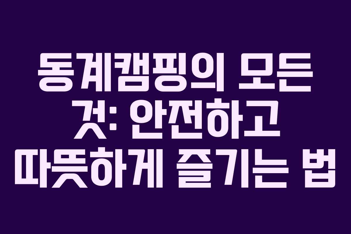 동계캠핑의 모든 것: 안전하고 따뜻하게 즐기는 법