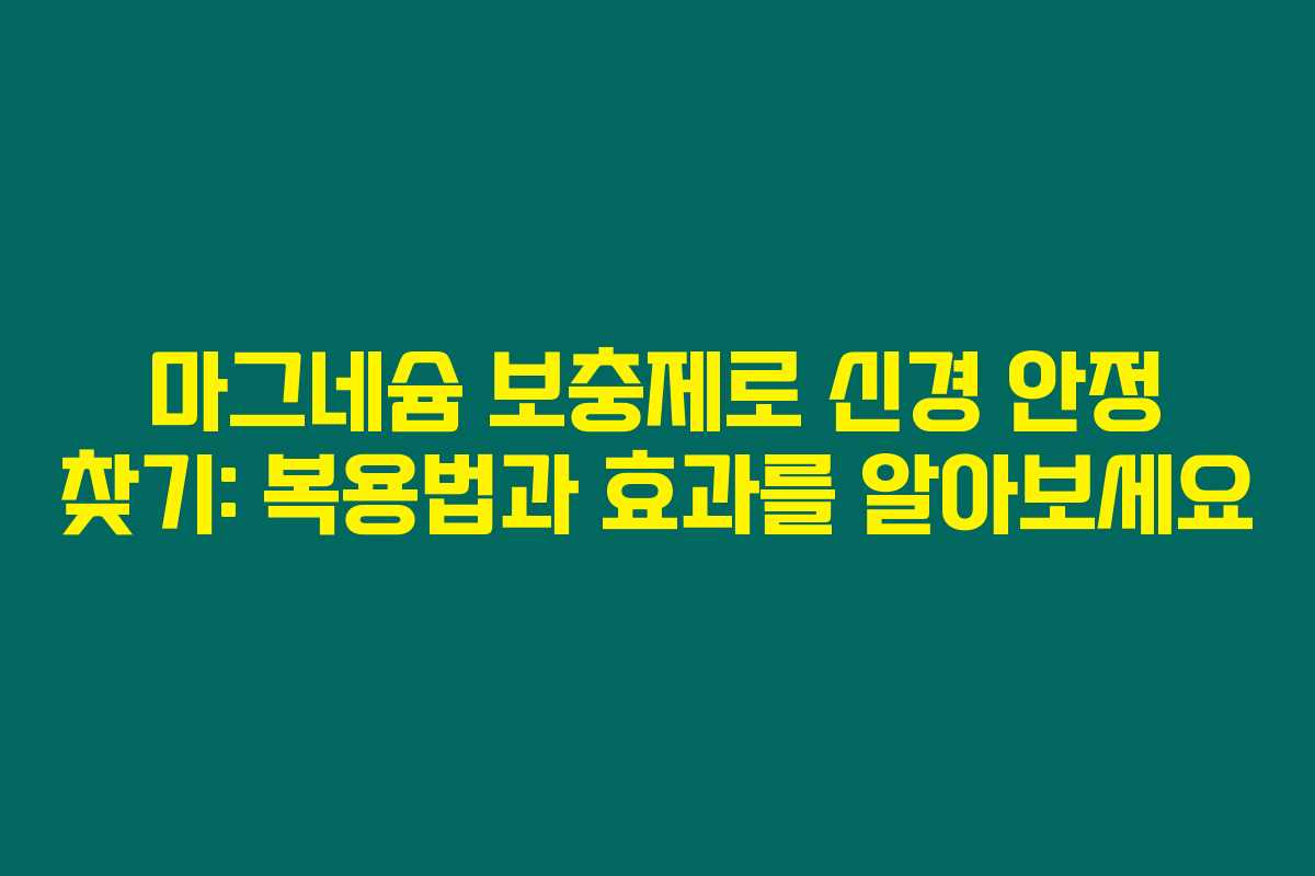 마그네슘 보충제가 신경 안정에 어떤 도움을 주나요?