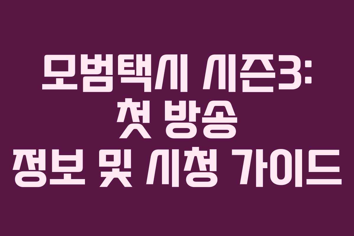 모범택시 시즌3: 첫 방송 정보 및 시청 가이드