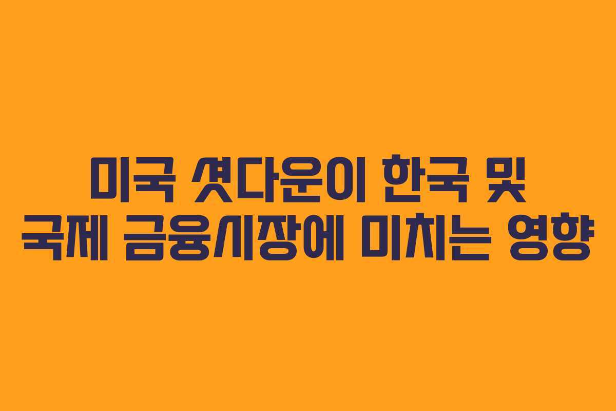 미국의 셧다운은 여러 방면에서 한국과 국제 시장에 영향을 미칠 수 있습니다.