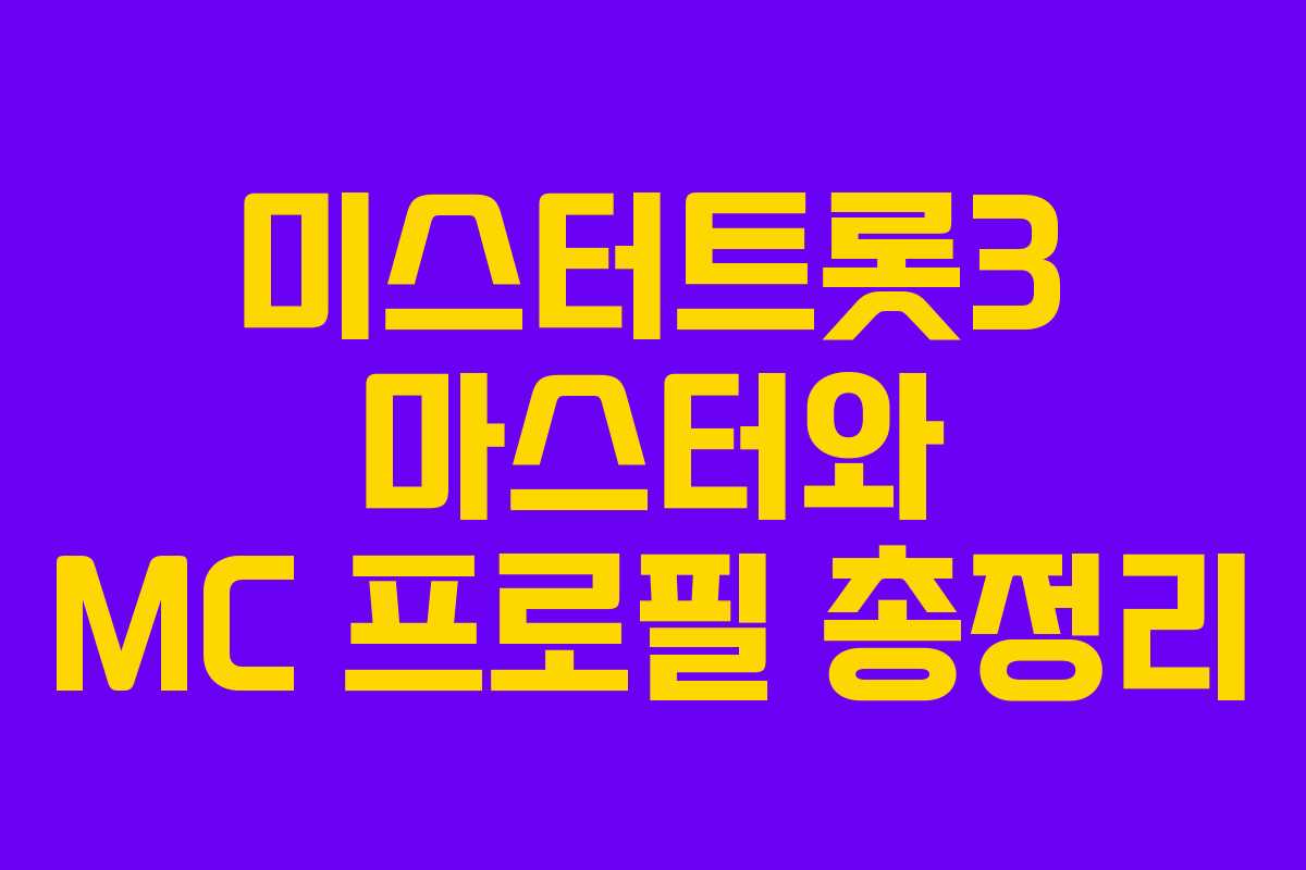 2023년 12월 19일 첫 방송을 앞둔 TV조선의 ‘미스터트롯3’에서는 새로운 마스터와 MC가 등장하여 많은 이들의 기대를 모으고 있습니다. 이번 시즌에서는 나이 제한이 폐지되었고, 일본 진출이 보장되는 등 변화가 많습니다. 이번 글에서는 미스터트롯3의 마스터와 MC 프로필을 자세히 살펴보겠습니다.