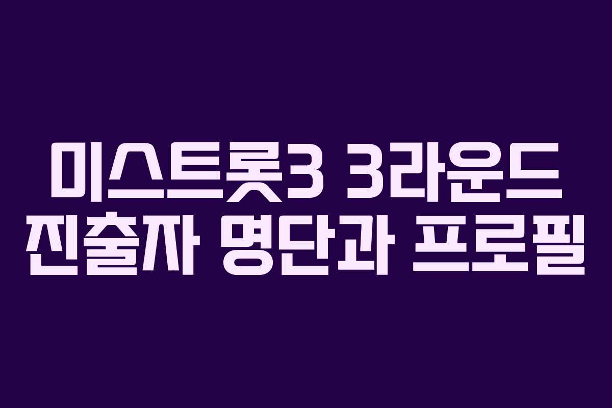 TV조선의 오디션 프로그램 미스트롯3가 많은 관심을 받고 있습니다. 이번 3라운드에서는 총 30명의 참가자가 진출하였으며, 이들을 통해 트롯의 매력을 더욱 느낄 수 있게 되었습니다. 본 글에서는 3라운드에 진출한 참가자 명단과 그들의 프로필을 소개하겠습니다.