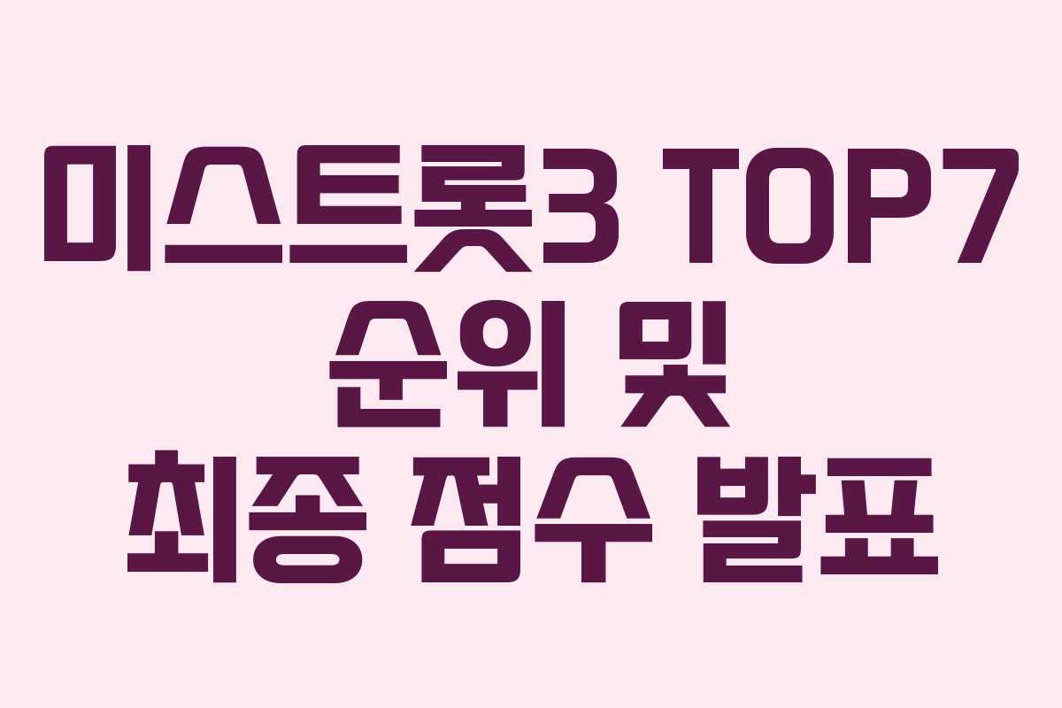 미스트롯3의 TOP7 순위와 최종 점수가 발표되었습니다. 세 달 간의 여정을 마무리하며, 다음 주에는 최종 진이 탄생할 예정입니다. 이번 포스트에서는 미스트롯3의 순위와 점수를 자세히 살펴보겠습니다.
