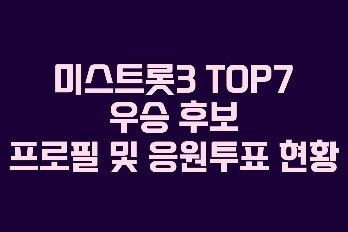 미스트롯3는 트로트 음악을 중심으로 한 경연 프로그램으로, 많은 팬들에게 사랑받고 있습니다. 이번 글에서는 미스트롯3의 출연진 중 TOP7으로 거론되는 우승 후보들의 프로필과 현재 진행 중인 대국민 응원투표 결과를 알아보겠습니다.