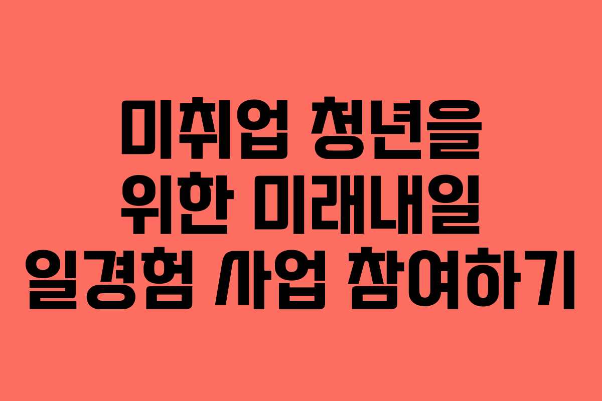 미취업 청년들에게 희망적인 기회를 제공하는 미래내일 일경험 사업에 대해 알아보겠습니다. 이 프로그램은 청년들이 직무 경험을 쌓을 수 있도록 지원하는 민관 협업 프로젝트입니다.