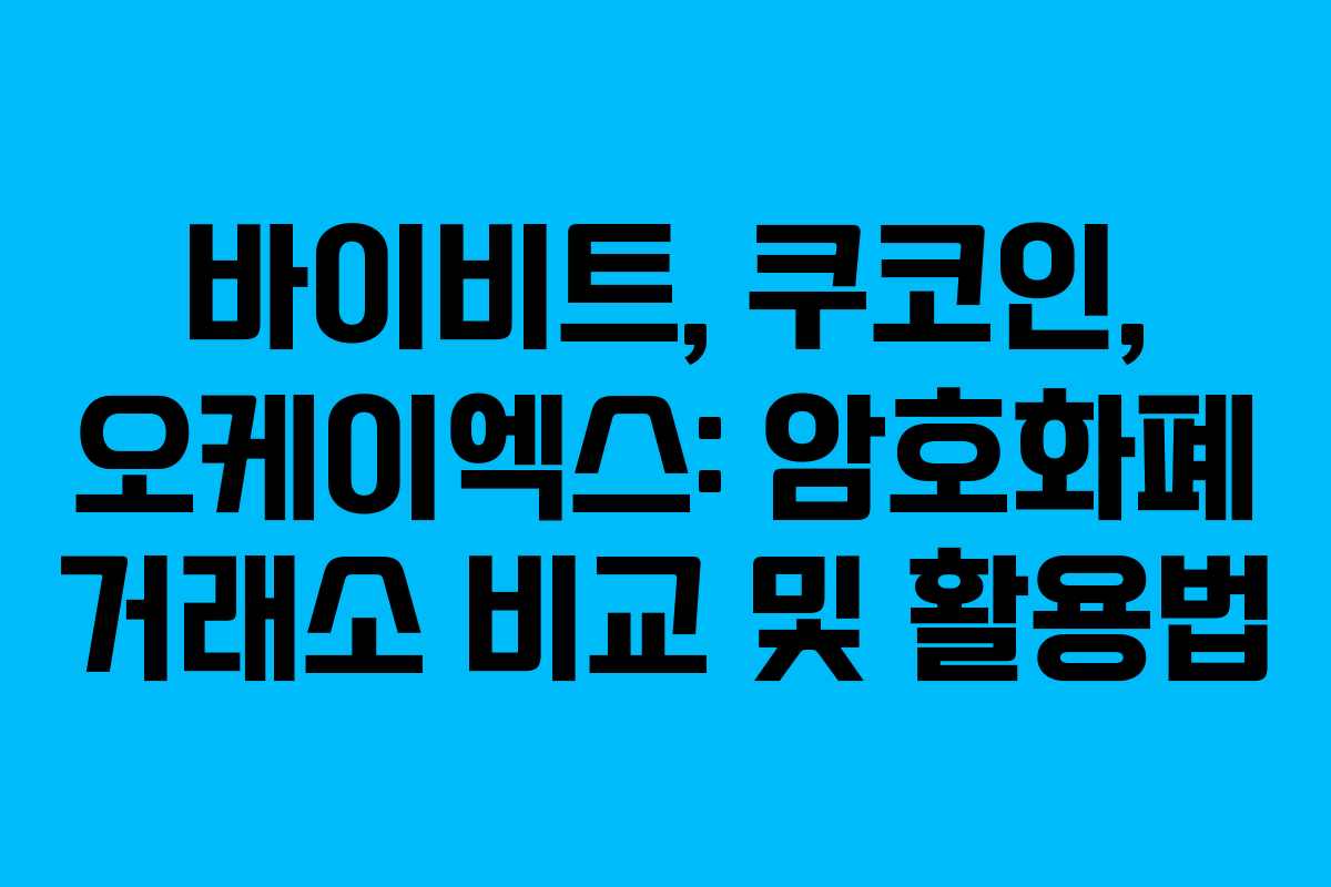 암호화폐 거래소는 다양한 거래 방식과 수수료 체계를 제공하여 사용자에게 최적의 거래 환경을 제공합니다. 본 글에서는 바이비트, 쿠코인, 오케이엑스의 특징과 사용법을 소개하겠습니다.