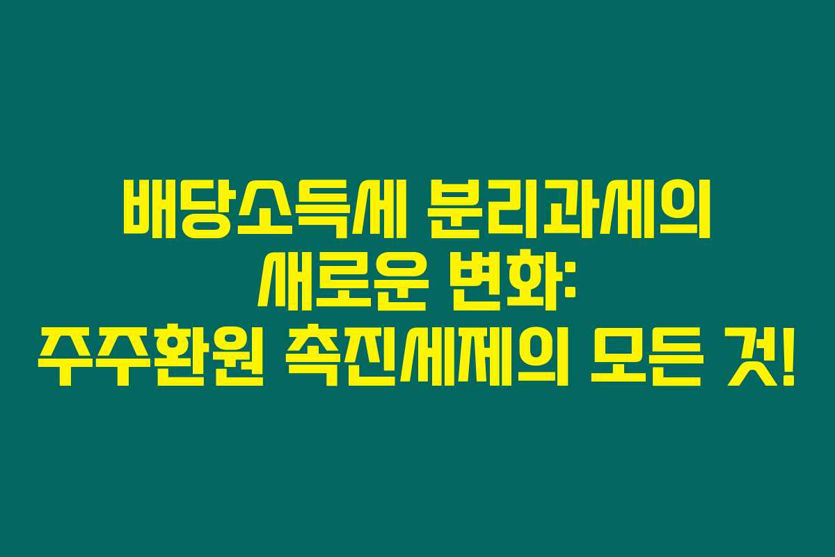 배당소득세 분리과세와 주주환원 촉진세제는 주식 투자자들에게 중요한 변화를 가져올 것입니다. 이 제도는 기업들이 더 많은 배당을 지급하도록 유도하고 주주에게는 세금 혜택을 주는 방향으로 설계되었습니다. 주의 깊게 기업의 재무상황과 경영 전략을 고려한 투자 전략을 수립하는 것도 현명한 투자로 이어질 것입니다.