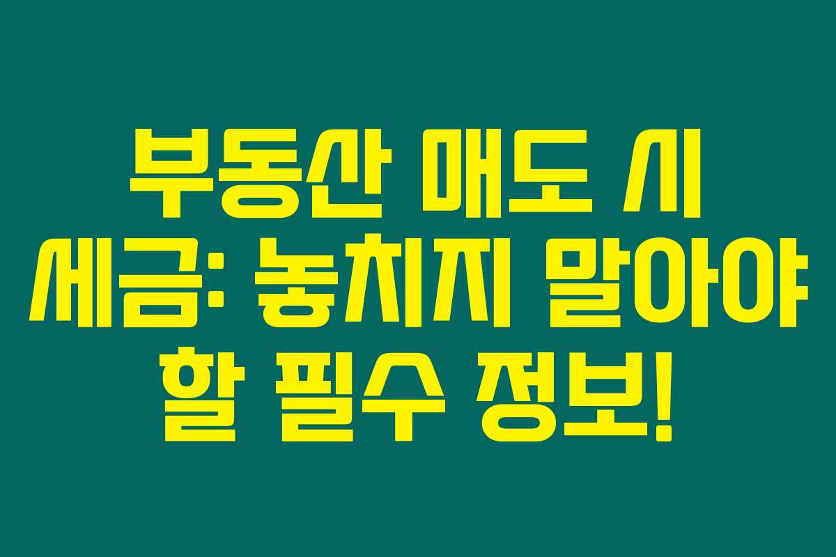 부동산 매도 시 세금: 놓치지 말아야 할 필수 정보!